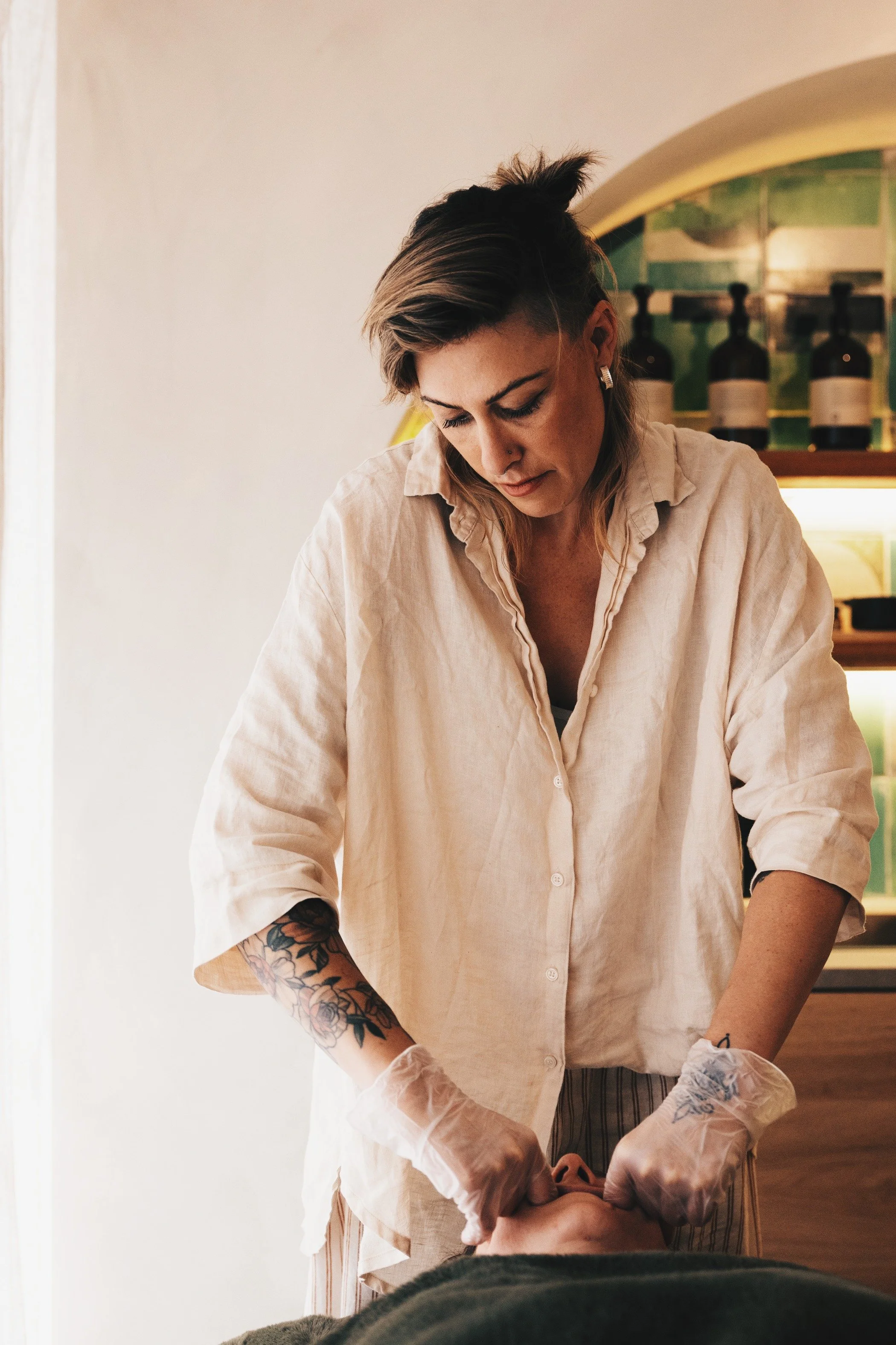 The Sculpt & Restore ritual at inhala haus is a deeply transformative facial experience that works on the external muscles of the face, the internal muscles of the mouth and jaw (buccal), and the nervous system.
